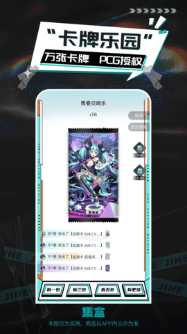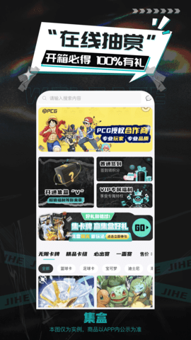 集盒APP还是一款专业的集换式卡牌平台,汇集了海量的游戏王、宝可梦、万智牌等多种热门TCG实体卡牌。用户随时随地开启盲盒,抽取心仪的卡牌。提供正版验证服务,确保商品即时更新,用户可以买到绝对正版全新的集还式卡牌。