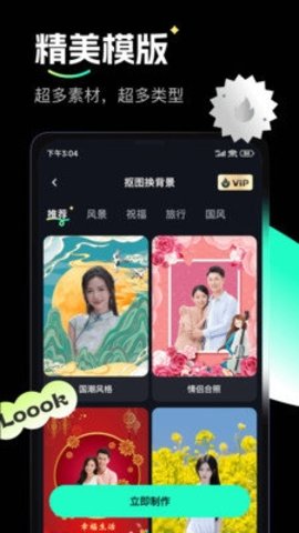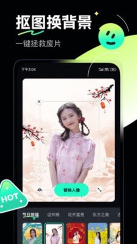 1.抠图换背景: 操作简单,上传照片后智能一键抠图,提供多种背景选择,如旅行、国风、祝福等风格。