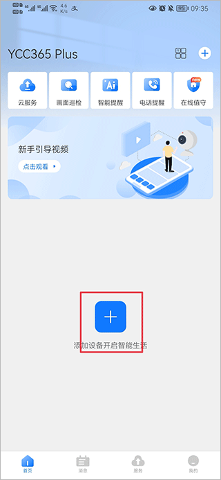 一、打开ycc365plus摄像头app,在首页中点击添加设备