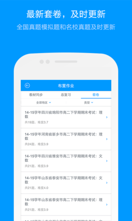 使用猿题库老师版非常简单方便,只需要动动手指几下,就能够将作业布置好。根据学生的情况,老师可以为不同的学生布置不同或相同的作业,这样可以更好地满足学生的学习需求。这个软件的题目非常全面,包括各个科目的题目,而且难度也是任你选择。这些题目都来自历年考试真题及名校优质试卷,可以说是非常有参考价值的。