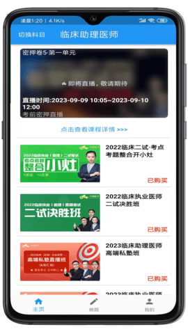 书香医考还提供直播课堂,让你能够随时随地在线学习。在直播课堂中,你可以与老师进行面对面的互动授课,进行考点梳理。老师会进行大数据统计,对高频错题进行详细讲解,帮助你巩固知识点。即使你因为太忙而错过了直播,也不用担心,因为书香医考提供录播课程,你可以随时回看课程内容。