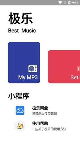 2、在主界面中提供了setting、mymp3、极乐网盘等功能;