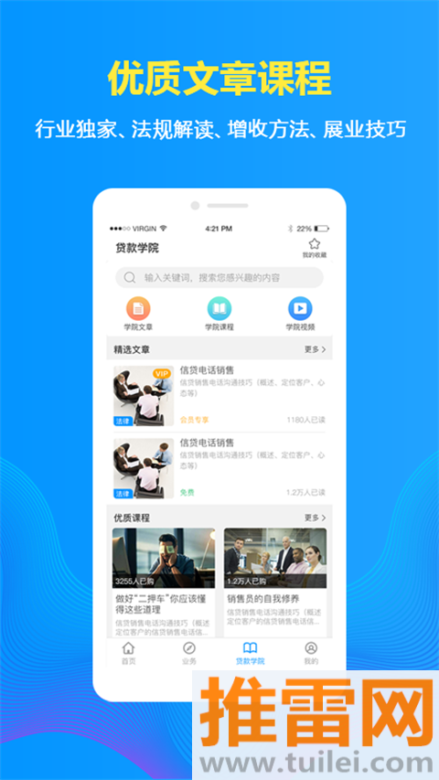 实时推送最新贷款政策、行业动态、风控技巧,贷款学院提供教程文章,帮经纪人持续成长。