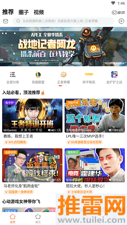 平台汇聚了英雄联盟、王者荣耀等数十款热门游戏赛事直播,涵盖国内外各大电竞赛事。