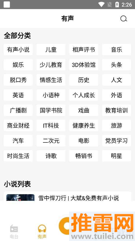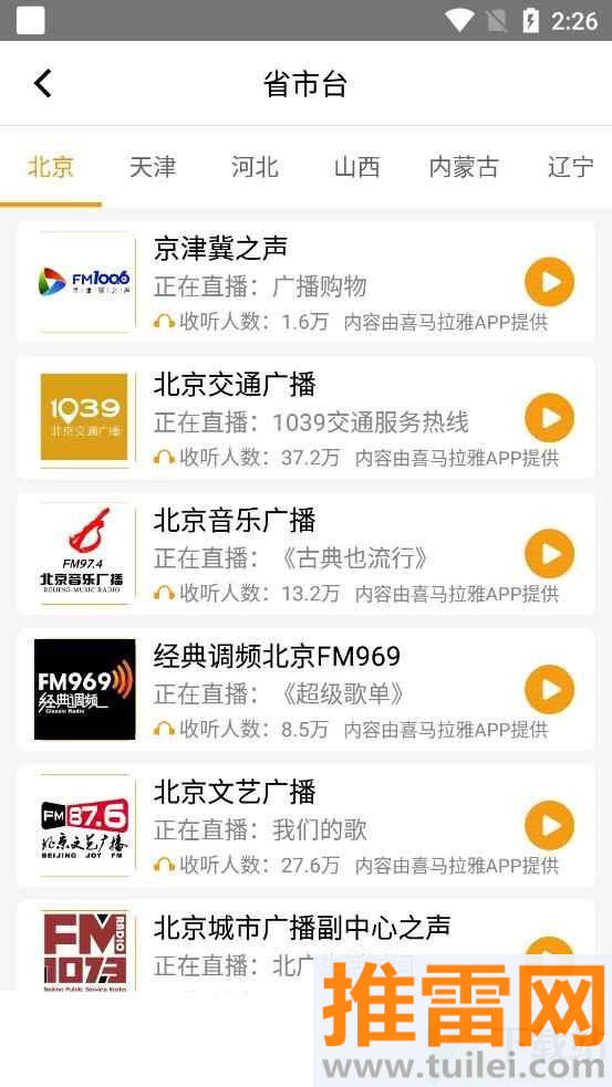 电台按新闻、音乐、交通、经济、文艺、体育、双语这些类型分开,找起来特别顺手,不会翻得头大。