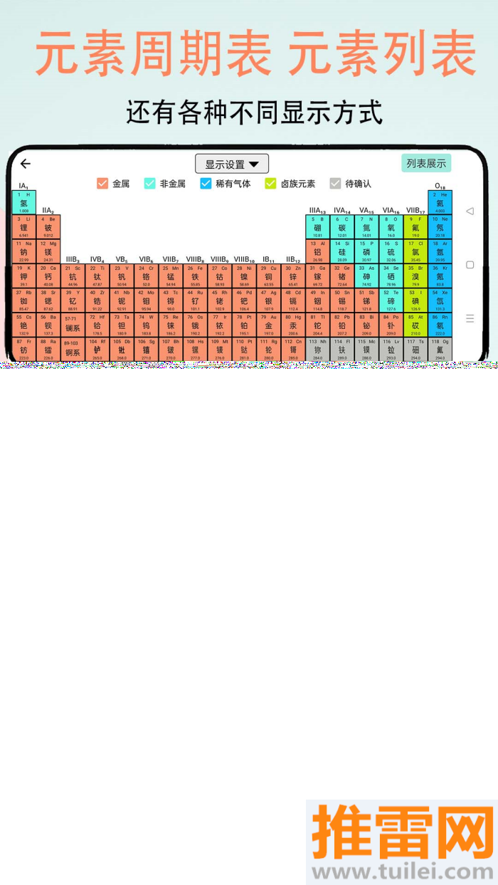 答:不仅包含了书上的内容,还支持多种排列显示方式,查看元素信息和相关化合物时比书本更智能更方便。
