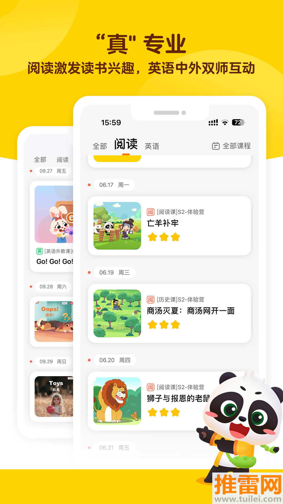 1、采用了中外双师互动的模式,不仅有专业的中文阅读指导,还能接触到英语互动,让学习效果更扎实。