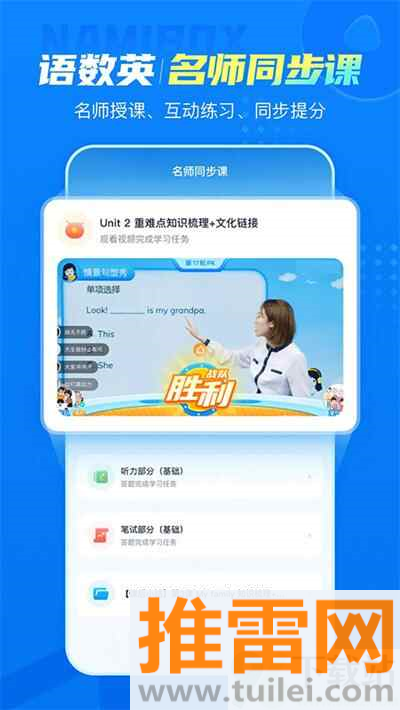 纳米盒app是专门给小学生用的一款学习帮手,孩子从一年级到初中之前都能上手,里面课本全,语文数学英语都有正版授权,跟学校进度同步,不用担心学偏了,打开就能点读课文,听原声朗读,还能自己读一遍让系统评一评发音准不准,平时作业遇到难字、难词,随手一点就出解释,孩子自己也能搞定,家长不用一直盯着,孩子愿意主动学,每天用个十几分钟,慢慢就养成了学习习惯,关键是不费妈。