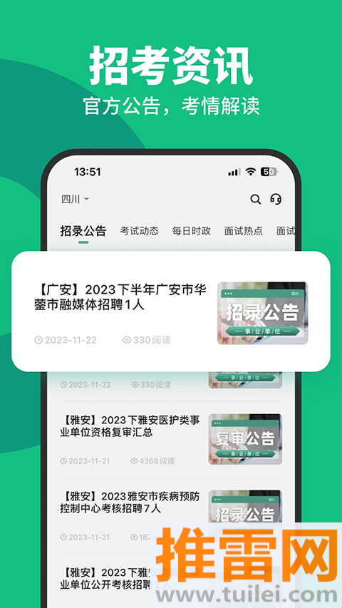 每天同步官方公告、报考指南、考试动态,第一时间知道本地最新招聘信息。