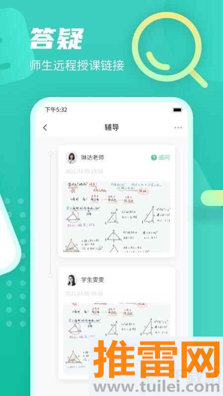 遇到任何学习问题都可以通过拍照或语音方式提交,系统会将问题自动推送给对应科目老师,获得专业解答后再反馈给学生。
