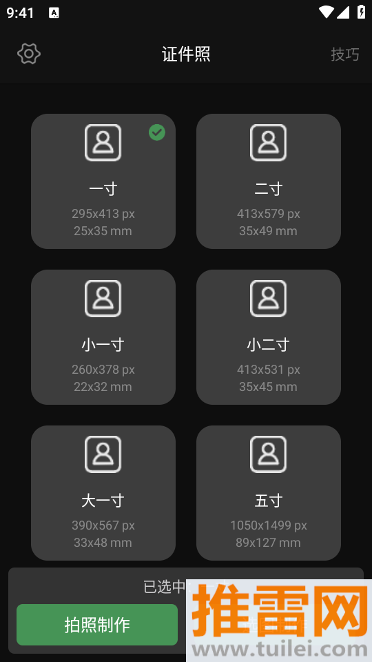 在主页你就可以看到能够制作的所有证件照尺寸;