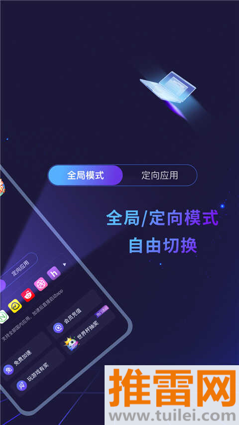 3、根据需求选择“全局加速”或单独为某个游戏/应用开启定向加速,灵活又省流量。
