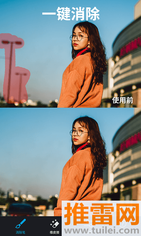 用消除笔抹掉乱入的人、日期、水印这些,照片干净C位秒出。