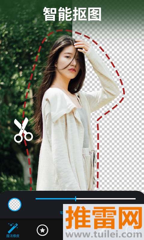 照片里的人像自动识别,一键删背景切多余部分,手动修细节超顺手。