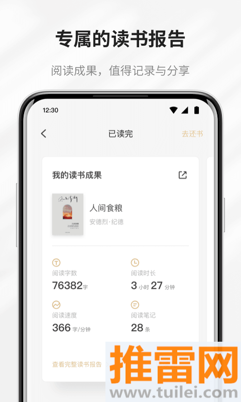 3、读完立刻出报告,时长、速度、笔记数可视化,晒图方便。