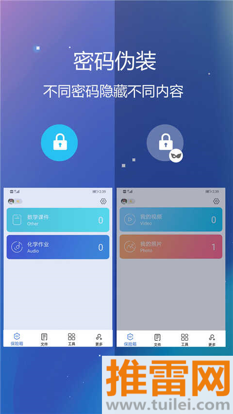 设置主密码进入真实私密空间,另设伪装密码进入展示界面,应对突发检查不露馅。