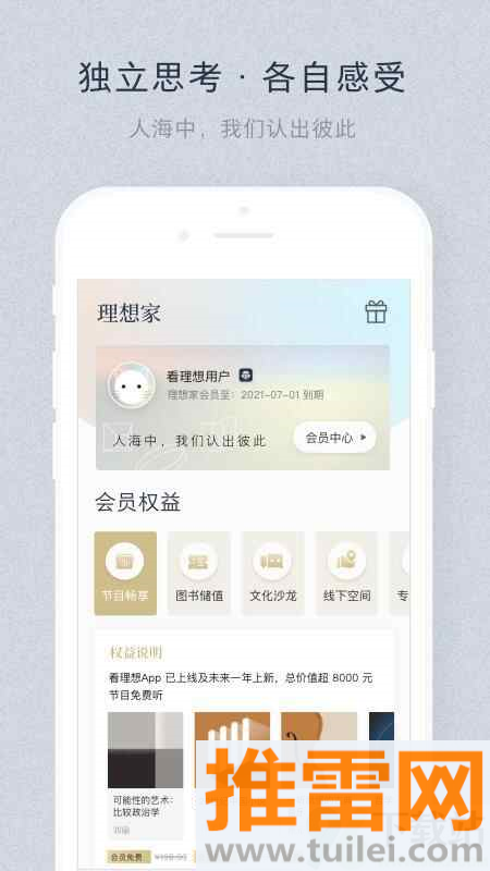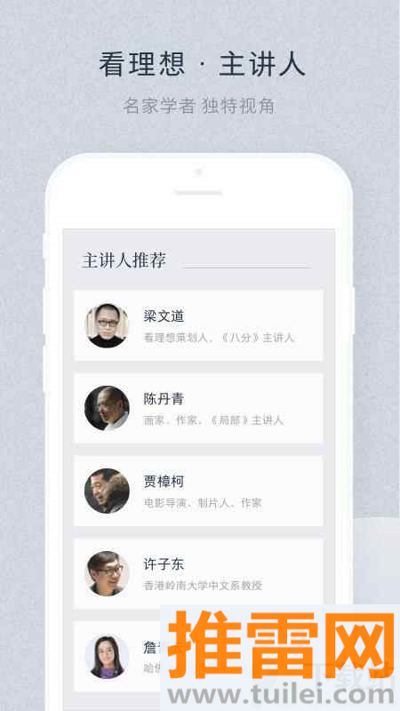 看理想是一款能让人安静下来听点东西的阅读应用,它把很多有见解的文化人聚到一起,用聊天一样的语气,跟你分享他们对文学、艺术和生活的看法,所以它特别适合在上下班路上,或者睡觉前戴上耳机听,它不一定能解决你的什么具体问题,但总能让你在忙碌的生活里,脑子里多了一些值得琢磨的事儿。