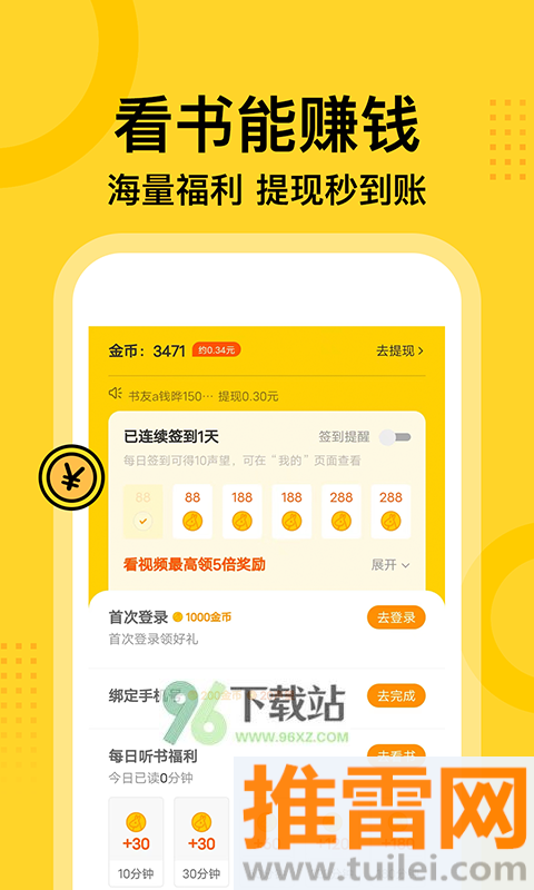 七读免费小说app里面的书库是真的全,基本上现在网上特别火的那些玄幻、都市或者言情小说,你都能在里面找到,而且更新速度也很快,追起书来特别省心,但最让我觉得有意思的是,它看书还能顺便赚点零花钱,你看书就能得金币,这些金币攒起来是可以直接提现的,除了看书,它也支持听书功能,有时候不想看了就切换成有声模式,也挺方便的,阅读界面也能按照自己的喜好来调整,用起来很舒服。