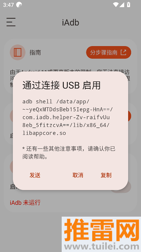 5、需要注意的是,每次手机重启之后,你都需要重新按照上面的步骤再激活一次iAdb服务才能生效。