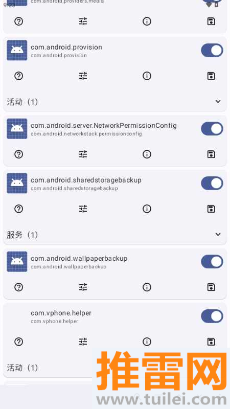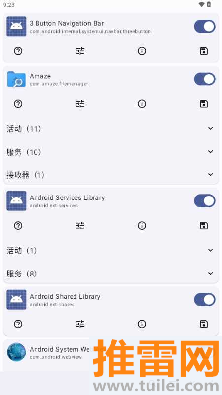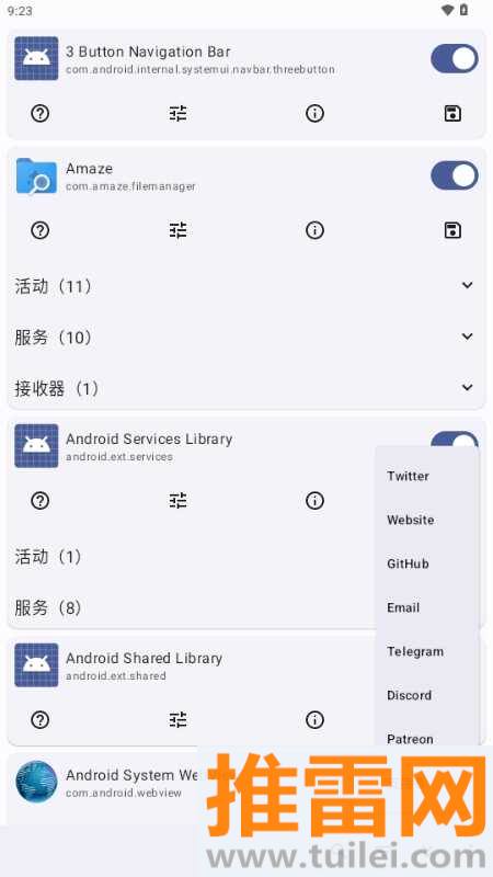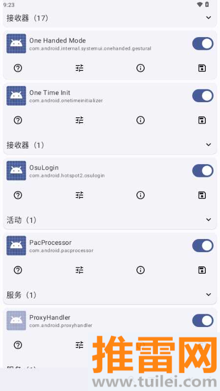 点开任何一个你想探索的APP,你就能看到它内部包含的所有“活动”、“服务”和“接收器”列表。