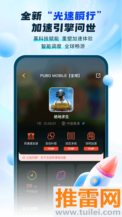 市面上你能想到的热门游戏,什么吃鸡、联盟手游、王者国际服,它基本上都支持一键加速。