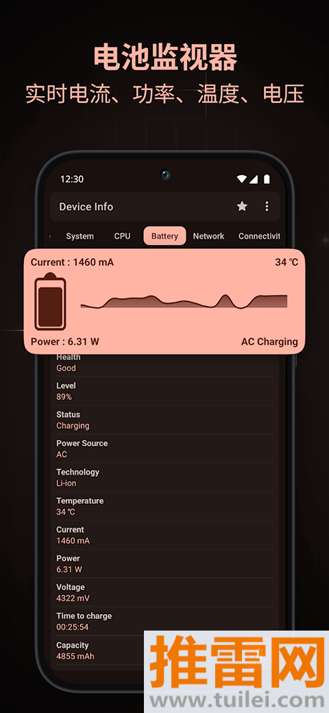 能实时盯着你手机CPU的占用率、电池温度和网速这些动态数据。