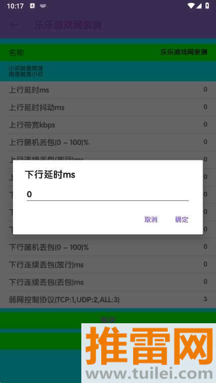 3、进入编辑页面,根据你的需求输入延迟时间、丢包率这些具体参数,不知道怎么设的可以先用默认值试试。