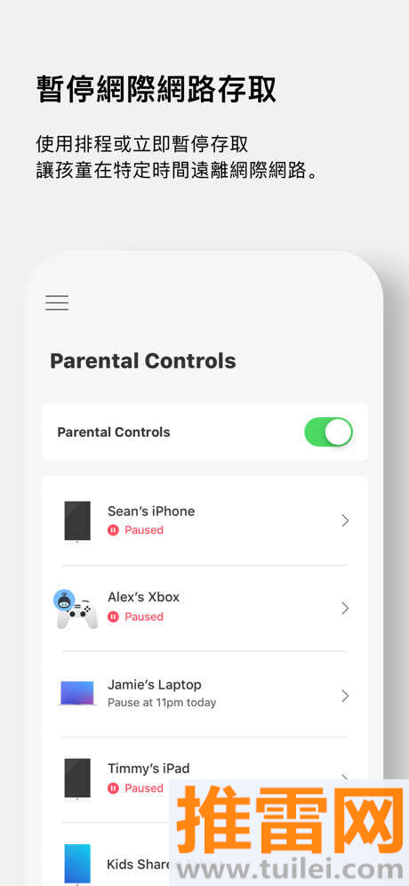 3、支持一键暂停互联网功能当你希望全家人放下手机好好吃饭的时候按一下按钮就能切断所有连接。