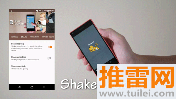 支持通过摇晃手机这个动作来快速锁定或者解锁触摸功能力度还可以自己调。