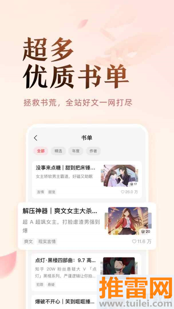 基于智能算法分析用户的阅读偏好,会定期推送符合个人口味的优质故事,让好内容主动找上门来。