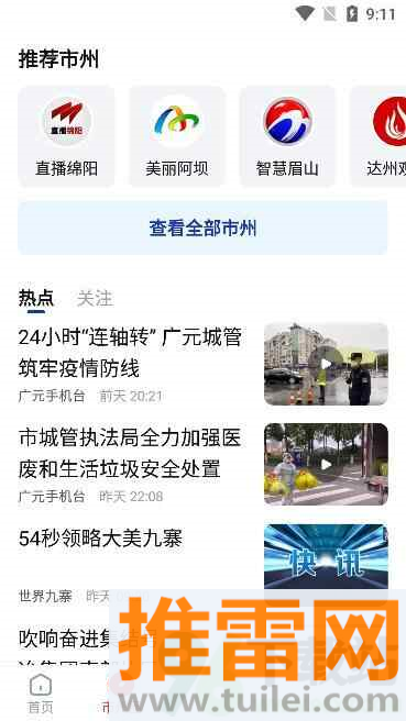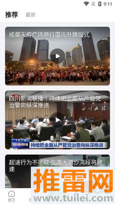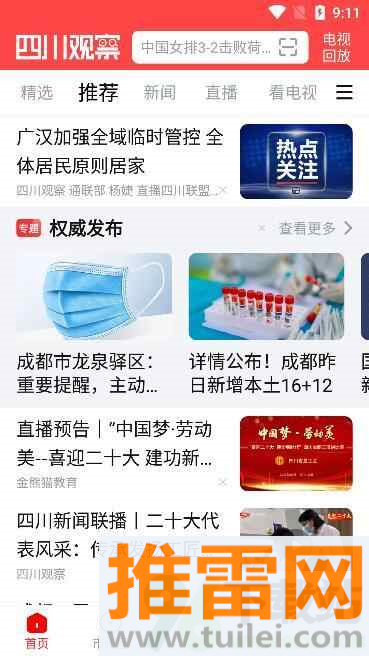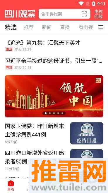 1、打开四川观察app后可以在首页滑动浏览推荐内容,左右切换不同新闻板块获取分类资讯。
