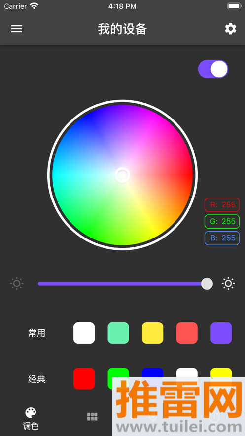 3、颜色盘支持1600万色+饱和度/亮度双滑杆,比遥控器细调更精准。