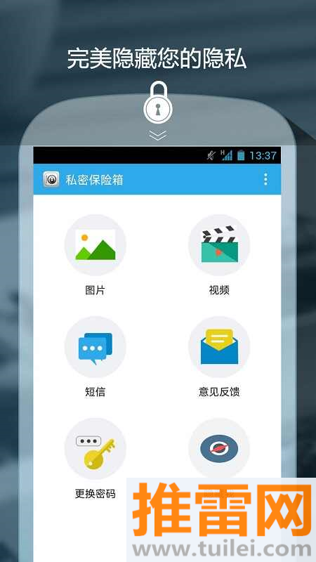 App私密保险箱这款软件,简直就是每个人手机里的“瑞士银行”,在这个手机不离手的年代,谁还没点不想让人看见的小秘密呢?不管是相册里的私人照片、尴尬的自拍,还是不想被别人翻到的聊天记录和视频,这软件都能给你把它们藏得严严实实的,它就像个隐形的防盗门,把你想要保护的东西全都锁进去,哪怕别人拿到你手机,没有密码也别想窥探到你的一丁点隐私,让你把手机借给别人玩的时候心里也能稳如泰山。
