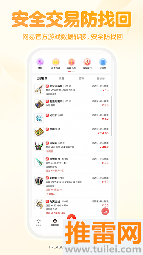 1、网易官方背书交易安全,角色装备道具游戏币全覆盖,避免私下交易被找回的风险。