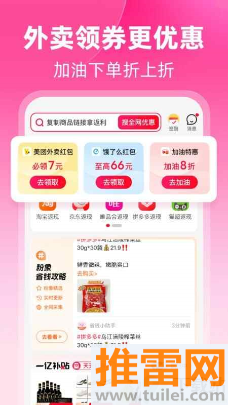 粉象生活这个软件主要就是帮你网购的时候省钱,顺便还能赚点零花钱,它能找到像淘宝、京东这些平台上商家设置的隐藏优惠券,你买东西前先用它搜一下,就能领券再下单,比直接买要便宜不少,除了省钱,你把商品分享给别人,如果别人通过你的链接购买了,你还能拿到一笔返利,所以,不管你是想自己买东西更划算,还是想利用空闲时间做个副业,这个平台都提供了一个很直接的方式。