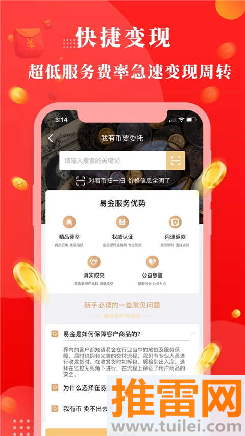 易金在线App是国内少有的专注金银纪念币交易的平台,不玩虚的,也不搞杂七杂八的噱头,就是实实在在做钱币买卖,不管是熊猫币、生肖币,还是各种特种纪念币、纸币邮票,这里都能找到,而且每一枚都经过严格质检,确保真品,平台还接入了NGC等国际权威评级服务,让你手里的币不仅能卖得放心,还能评得出价值、涨得了行情,除了拍卖和商城,还有金币百科、币友社区这些实用板块,新手能学知识,老玩家能聊行情,真正把收藏、交易、交流全串起来了。