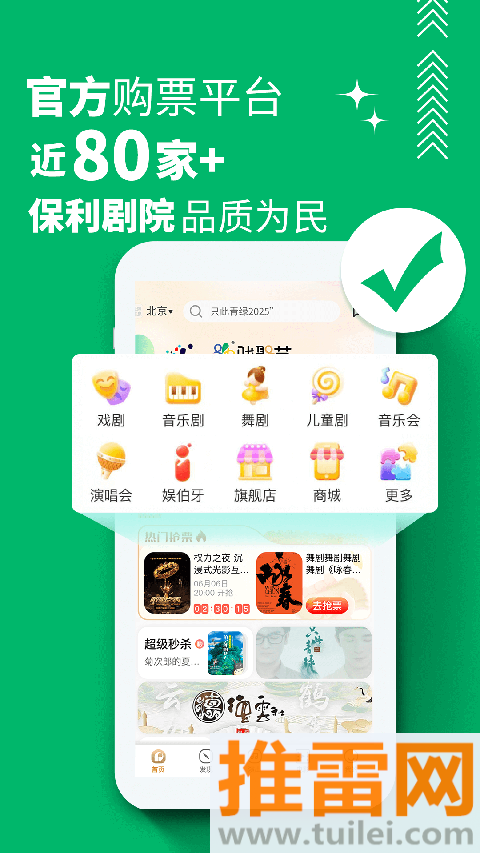 保利票务App就是把你口袋里的零钱直接换成剧院座位的“魔法通道”,全国七十多家保利剧院、七千块银幕同步放票,话剧、音乐剧、亲子剧、大师音乐会一键搜,座位图放大能看到走道在哪,选座比现场柜台还清楚,它家“伯牙观剧”天天更新幕后采访,提前告诉你哪幕容易哭、哪段值得鼓掌,云剧院还能线上看高清录播,地铁里也能把歌剧补完,电影票常年早鸟价,话剧票限时秒杀,会员等级越高折扣越狠,月底积分还能白薅周边,一句话:想花最少的钱坐最好的位子,点开它就行。