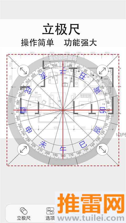 移动手机或手动拨动罗盘,就能实时看到详细的地理方位信息,南北东西一目了然。