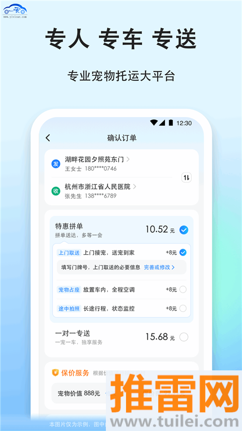 1、专宠专人专车服务,安全系数高到让养宠人敢放心把毛孩交给平台。