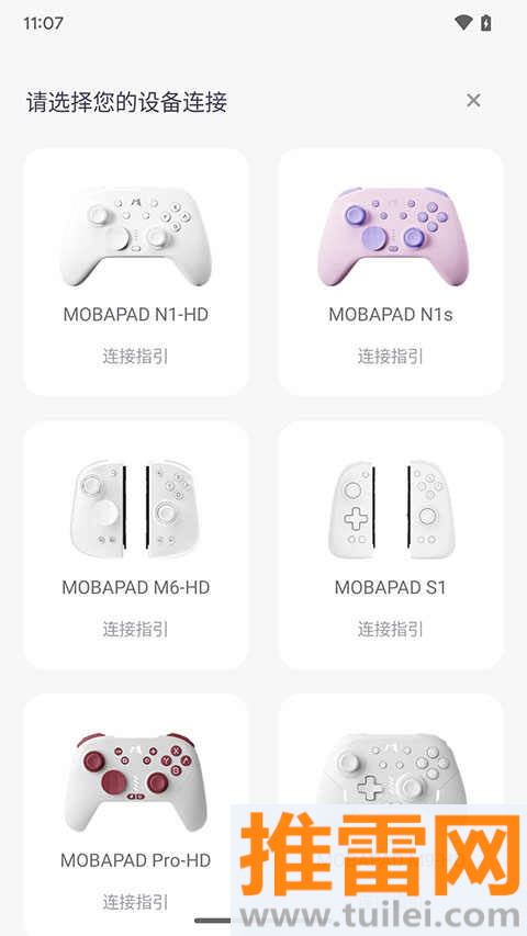 1、打开Mobapad App,首页直接看到手柄连接列表,选你的魔派型号点连接,蓝牙一配就上。
