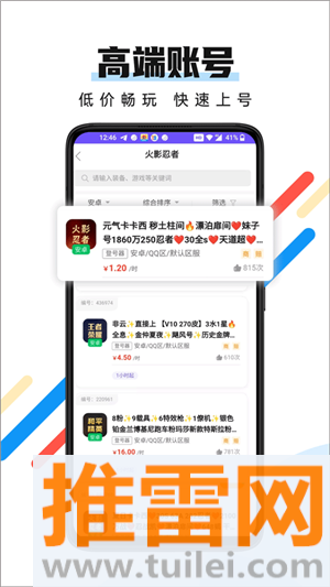 全民租号app官方最新版就是现在很多不想自己肝号、又想爽玩顶级皮肤和大神段位的玩家手里的“游戏快车道”,尤其是王者荣耀、和平精英、LOL、CF、火影忍者这些热门游戏,氪金肝号太费时间和钱,用这个平台直接租个绝版皮肤、全英雄、超高段位的号,几毛钱到几块钱玩几小时,爽完就走人,不用担心账号被封或者养号辛苦,平台正规,租号过程全自动登录,不用输密码,安全又省心,号主那边出租也简单,挂上去等着收租,收益到账快,很多人用下来都说,以前肝号肝到吐,现在租号爽一把就够,省时省钱,游戏乐趣直接拉满。