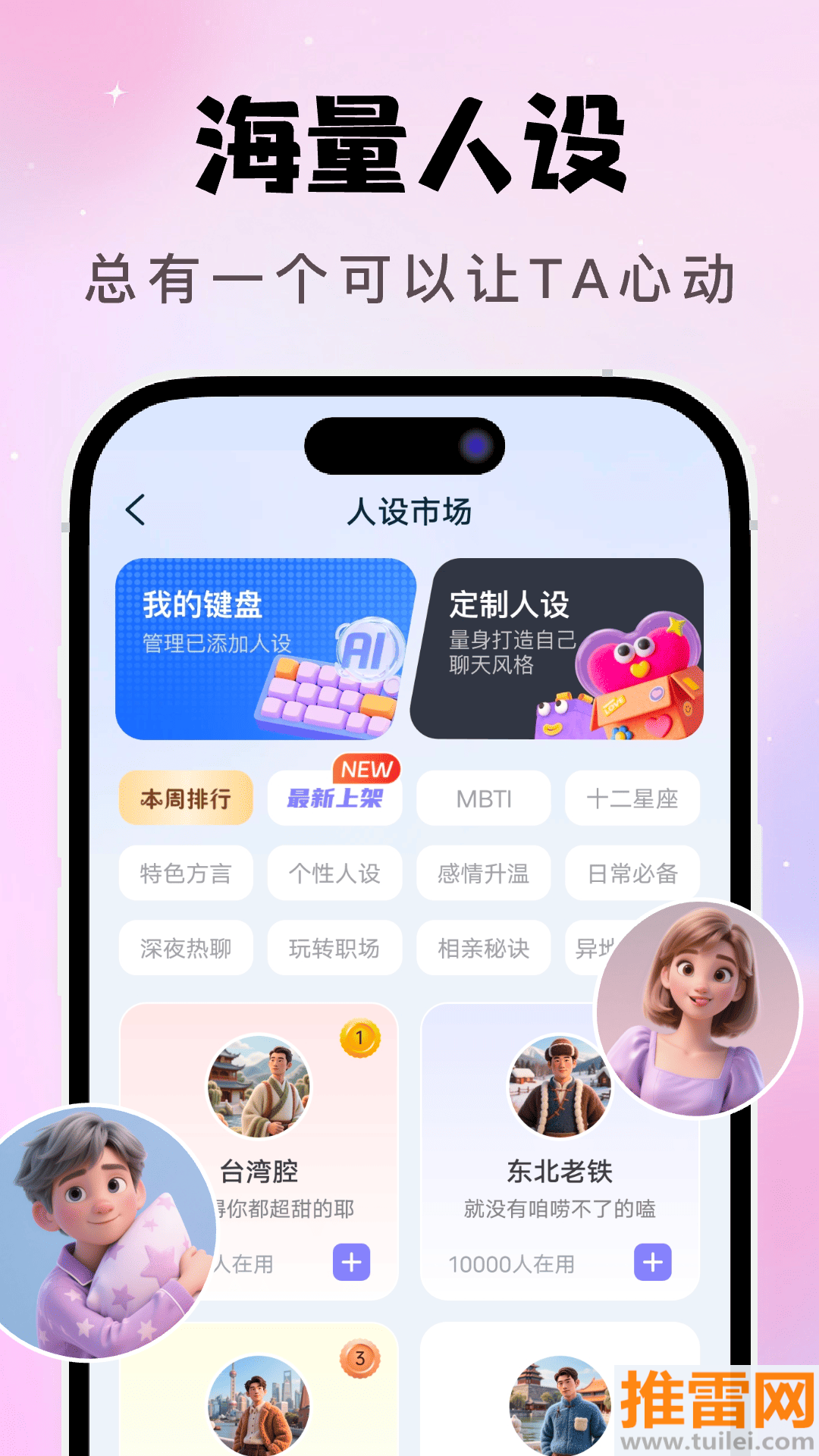 2、内置了上百种不同风格的角色模型,不管是高冷还是热情,随时都能一键切换来应对不同的人。