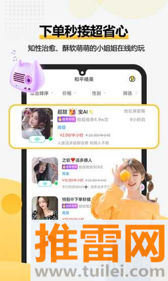 1、你可以在首页根据自己常玩的游戏进行筛选,快速找到技术好、声音好听的开黑伙伴。