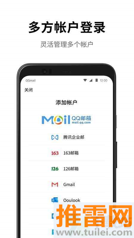2、首次启动时可以使用QQ号快速登录,也能手动添加其他邮箱账号进行管理。