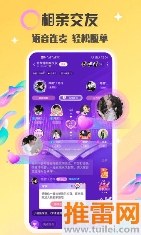 3、看到首页上那些热闹的语音房间直接点进去就行,不想说话就先听听,想聊了就申请上麦跟大家互动。