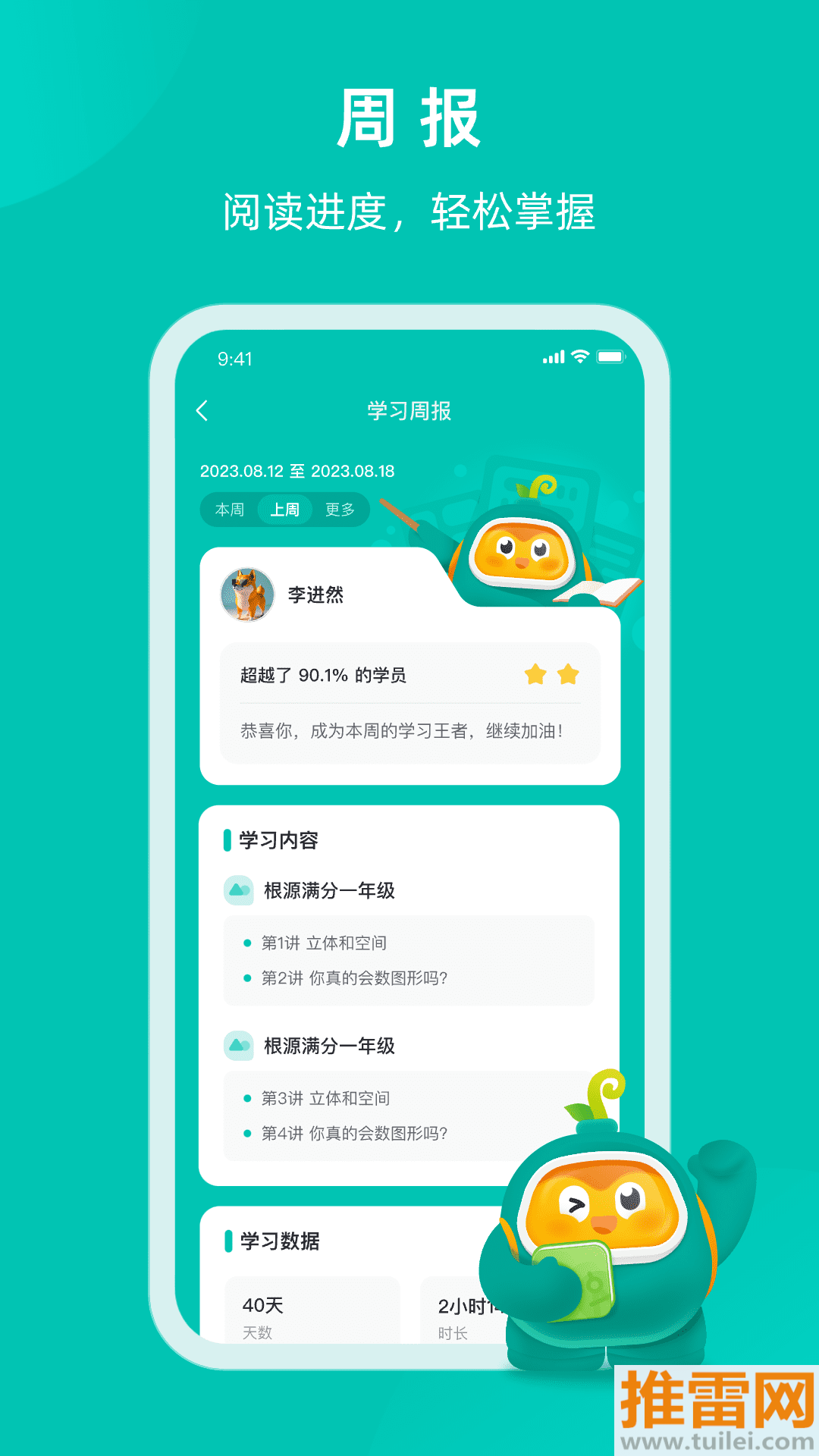 3、家长不用在旁边干着急,软件里有参与机制,手机上就能随时了解孩子的学习进展,跟孩子一起进步。