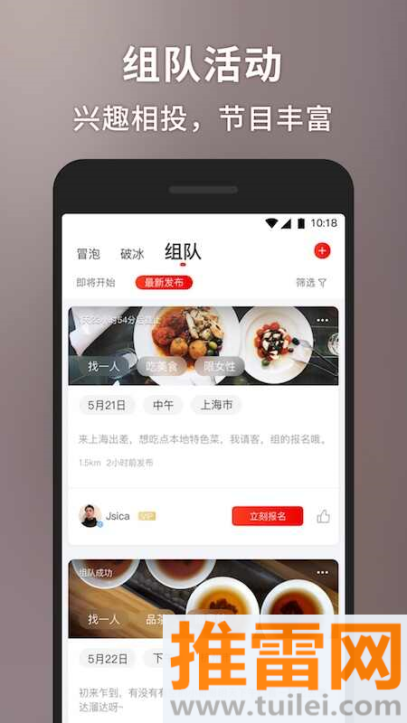 4、如果觉得一对一聊天太尴尬,可以去报名参加那些组队活动,人多了自然就有话题聊,气氛也更活跃。