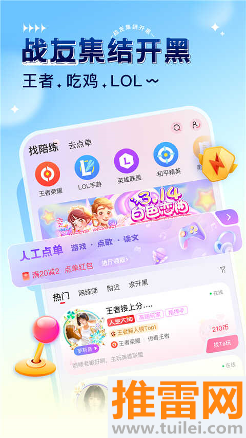 从技术流大神到声甜会撩的美女玩家,按喜好自由挑选陪玩风格。