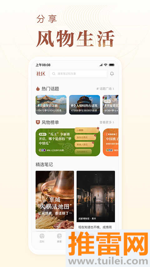 1、社区话题按节气更新,秋分只聊蟹,霜降专说柿,强迫症患者极度舒适。