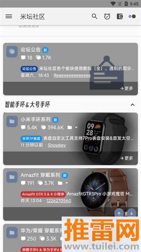 米坛社区App其实就是把原来网页里那些零零碎碎的板块整进了手机,省得你来回跳转,想找表盘、想下固件、想跟同好扯两句,点开就能完成,它把帖子、资源、私信、提醒全塞到底部几个按钮里,上手没门槛,老用户也不会觉得别扭,名字听着像小米专属,其实华为、荣耀、Amazfit、OPPO、Apple Watch的玩家都在里头混,帖子天天更新,蹲坑刷两下就能捡到新东西。